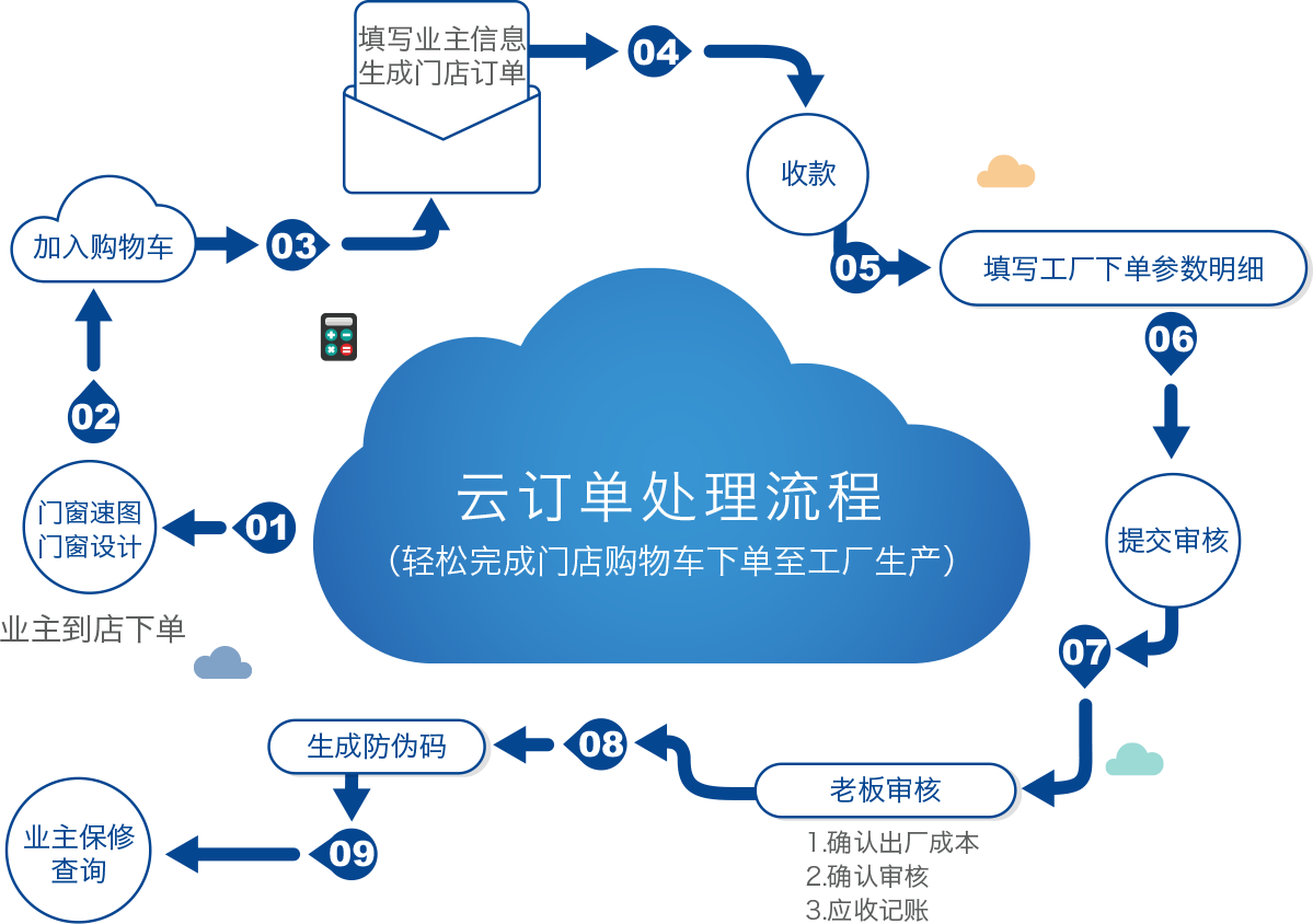 確認后可直接通過云訂單管理中心下單至門窗廠,可查詢訂單信息,和工廠供貨價,以便核對訂單利潤和訂單結算。